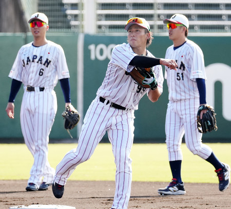 野球日本代表「侍ジャパン」の強化合宿は7日、宮崎市のひなたサンマリンスタジアム宮崎で2日目が行われ、シートノックやサイン交換機器「ピッチコム」を使っての投内連係など、守備面を重点的にこなした。 【時事通信社】