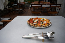 1981(昭和56)年、原宿に1号店がオープン。下北沢店は16店舗目。ピザやパスタなどの単品から、コース、ワインを中心としたドリンクなど、メニューに幅を持たせた。テラス席は茶沢通りに面しているが、落ち着いて食事ができるように出入口は脇に入った場所にするなど動線を工夫した。