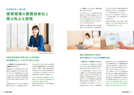 今号では、保育現場の喫緊の課題である「働き方改革」に焦点を当て、ICTシステムの活用による業務効率化や、独自の理念を持つ保育園のインタビューなどを掲載しています。