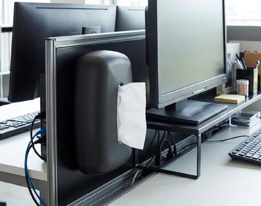 デスクまわりデスクに箱ティッシュを置くと、意外と場所を取ります。