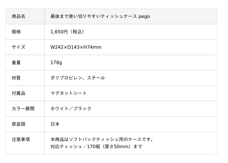 【新商品】“ピタっとくっつく”ティッシュケース『pego(ペゴ)』