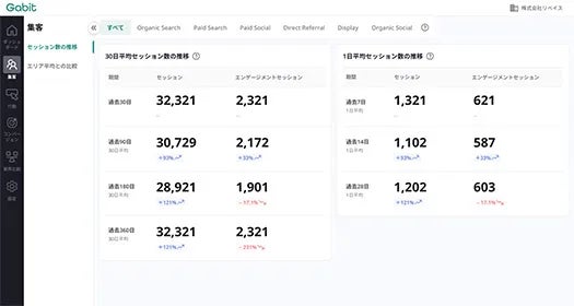 必要な設定が完了すると翌日よりGabit上でデータを確認いただけます。