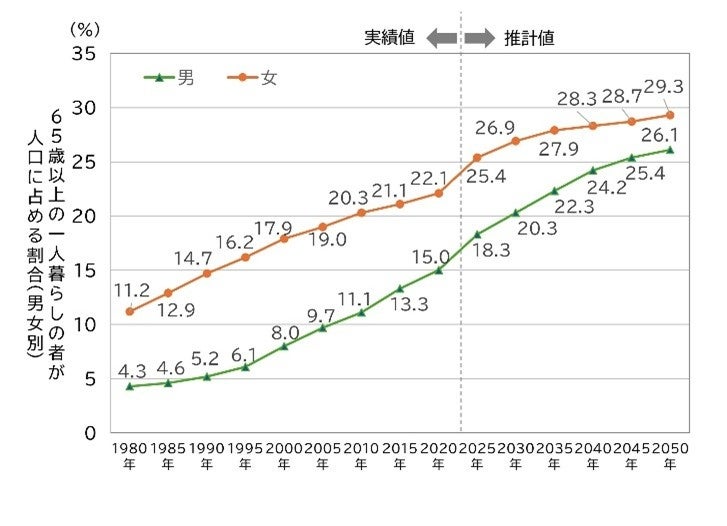 【参考】65歳以上の一人暮らしの者の動向(内閣府 令和7年版高齢社会白書データより作成)