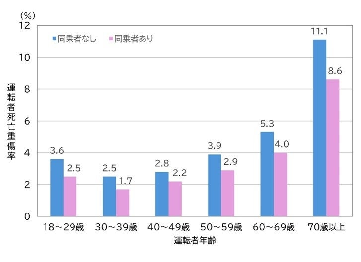 【参考】同乗者有無別の運転者死亡重傷率(ITARDA INFORMATION No.93のデータより作成)